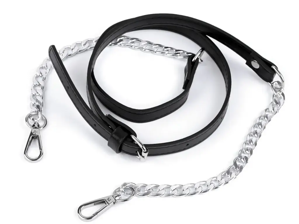 Verstellbarer Taschenriemen mit Kette und Karabinern – schwarz/silbern