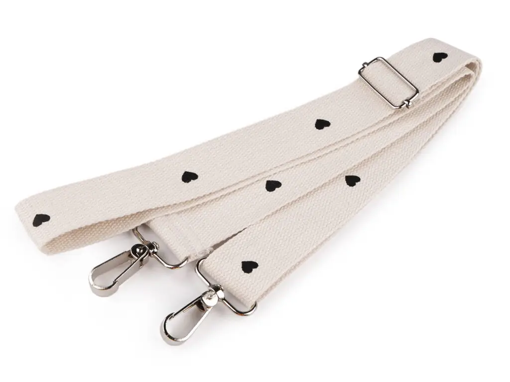 Gewebter Taschengurt – verstellbar, Breite 3,8 cm – creme mit Herzen (Farbe 6)